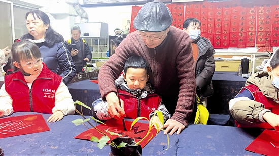 2月1日,三门峡日报小记者中心组织小记者开展“对话书法家,挥毫写‘福’迎新春”主题活动。活动中,小记者与书法家王学峰老师面对面交流,学习如何书写“福”字,在实践中感受民俗文化的魅力。图为老师指导小记者写“福”字。 胡喆喆 摄