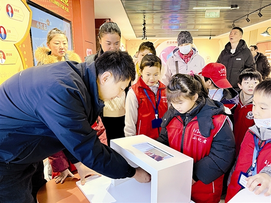 1月31日,三门峡日报小记者中心组织小记者走进市中心血站,参加“一滴血的旅程,探索血液的奥秘”主题活动,让小记者认识到无偿献血是无私奉献、救死扶伤的崇高行为,给社会传递更多爱心和关爱。图为小记者体验模拟献血设备。 尚栋 摄