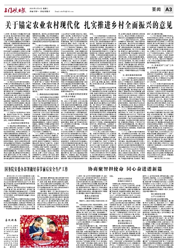 关于锚定农业农村现代化 扎实推进乡村全面振兴的意见