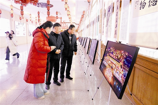 2月4日,陕州地坑院景区年味浓郁,众多游客驻足参观“骐骥联春·福暖万家”出彩陕州书画摄影精品联展。本次展览精选150幅优秀作品,涵盖书法、美术、摄影三大类别,全方位展现崤函大地的风土人情与新春气象,展期将持续1个月。 本报记者 王建栋 摄
