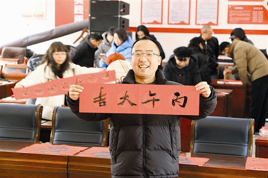 2月4日,2026年“骐骥联春·福暖万家”出彩陕州楹联迎春活动走进陕州区甘棠街道,10余位市、区书法家齐聚现场,挥毫泼墨书写新春祝福,将党和政府的关怀与节日的美好期许传递到群众心间。 本报记者 王建栋 摄