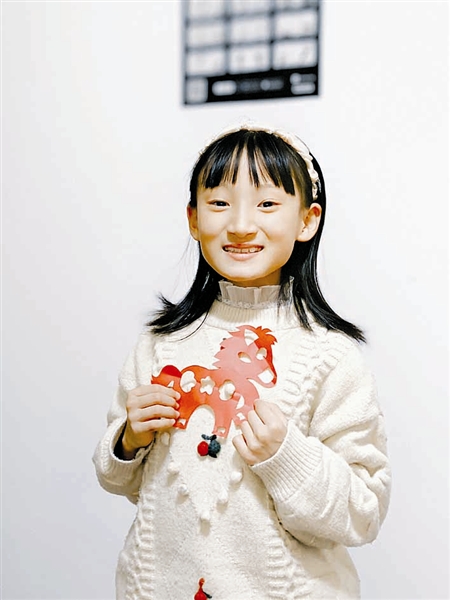 图②赵贞妮展示自己的骏马剪纸作品 资料图