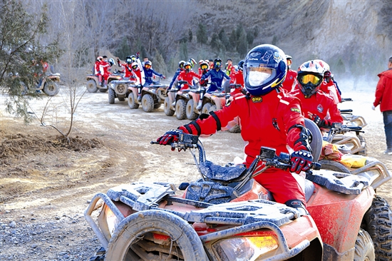 2月20日,农历大年初四,在陕州区大营镇吕家崖村的溪峡客全地形越野基地,众多游客驾乘越野摩托车在蜿蜒起伏的赛道上驰骋,尽享春节假期的欢乐时光。 本报记者 王建栋 摄