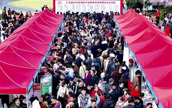 这是2月25日在四川省眉山市仁寿县拍摄的2026年春风行动新春专场招聘会(无人机照片)。