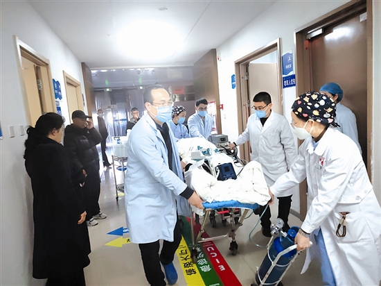 2月19日(农历正月初三)晚,该科室接到兄弟医院一名32岁男子突发呼吸心跳骤停需要紧急救援的指令后,科室主任程相阁、护士长王朋辉、ECMO专科护士白鹏立即出发。正在灵宝临时探亲的医疗骨干张迪华医师第一时间赶赴现场,实时同步评估病情;团队在救护车上远程会诊、同步制定救治方案,为抢救赢得宝贵时间。抵达医院后,ECMO团队与当地医护紧密配合,快速完成评估、穿刺、置管、预充等操作。随着机器运转,患者生命体征逐渐好转。此次救援不仅成功挽救年轻生命,更助力兄弟医院实现ECMO技术零的突破。