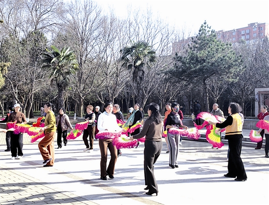 扇舞翩跹,身影灵动。日前,不少市民齐聚三门峡虢国公园练习扇子舞,大家凝神静气、神情专注,在运动中享受健康生活。 本报记者 胡晓萍 摄