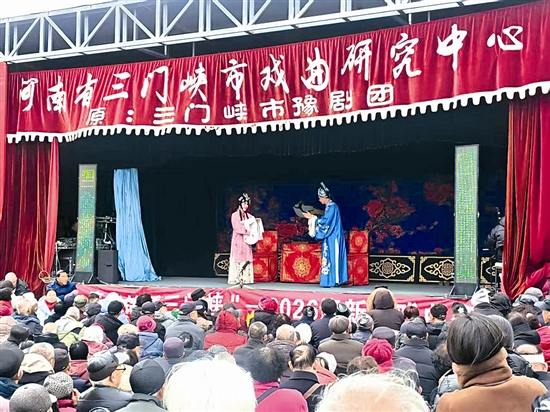 春节期间,三门峡市戏曲研究中心以“文化惠民、戏暖人心”为宗旨,精选《包青天》《朝阳沟》《五更惊雷》等经典豫剧曲目,分别在文博城南广场、家王庄广场、金三角建材市场舞台轮番上演,丰富了市民精神文化生活,提升了群众幸福感与获得感。图为2月25日上午,金三角建材市场舞台演出情景。 本报记者 徐新格 摄