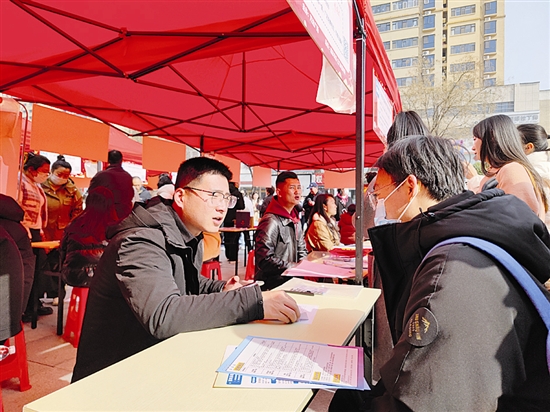 3月3日上午,在三门峡市区万达广场1号门前广场,“开启新岁 职启新程”元宵节万达专场招聘会火热举行,现场130家招聘单位为求职者提供普工、销售、直播运营等多个领域岗位,现场人头攒动,求职氛围十分浓厚。据了解,该招聘会由三门峡直聘网与万达广场联合举办。 本报记者 单义杰 摄