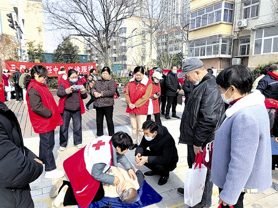 3月5日,第63个学雷锋纪念日,三门峡市红十字会组织武强中医院、红十字志愿者等,开展应急救护、健康义诊、爱心义剪等志愿服务,把爱心服务送到居民家门口。 丁一纯 摄