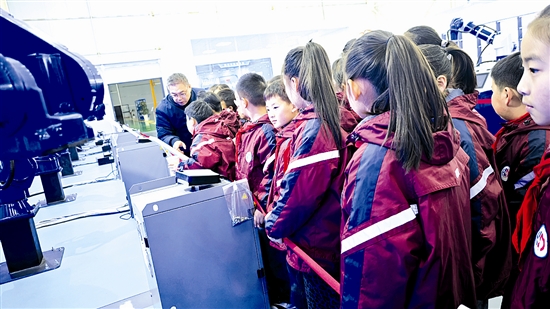 为丰富“开学第一课”形式,将科技教育与实践育人深度融合,近日,渑池县会盟小学组织师生走进菲柯机器人厂区,开展沉浸式研学实践活动,让同学们在近距离感受智能制造魅力的同时,点亮科学梦想,激发探索热情。 王超 王凯锐 摄