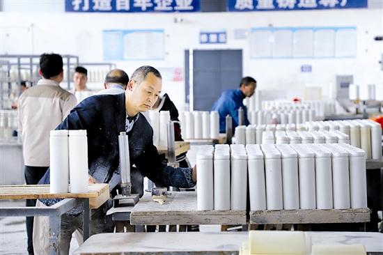 位于市城乡一体化示范区(高新区)的三门峡凯特耐火纤维有限责任公司是一家生产经营销售耐火纤维制品、工业炉及炉用材料、保温耐火材料的企业。该公司坚持诚信准则,为客户提供质优价廉的产品,不断优化产能,优化管理,推动企业稳步向前发展,受到客户青睐。图为近日生产车间的工人细心查看整理刚生产出来的产品。 本报记者 徐洪波 摄
