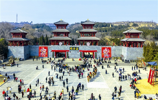 图②:3月7日,灵宝函谷关景区旅游热度不减,游客络绎不绝,乐享春日文旅盛宴。