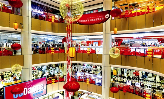 图⑥:3月8日,市区一家商场人气旺盛,前来购物休闲的市民络绎不绝。