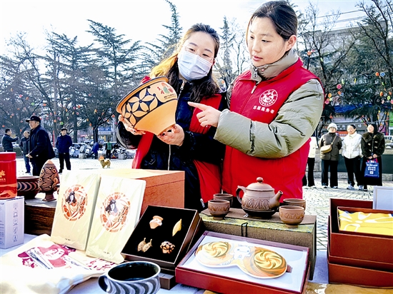 近日,在渑池县仰韶广场,志愿者通过专业知识,向过往群众介绍仰韶彩陶文化产品,让群众深入了解仰韶文化的巨大魅力,深受大家欢迎。 王家臣 摄