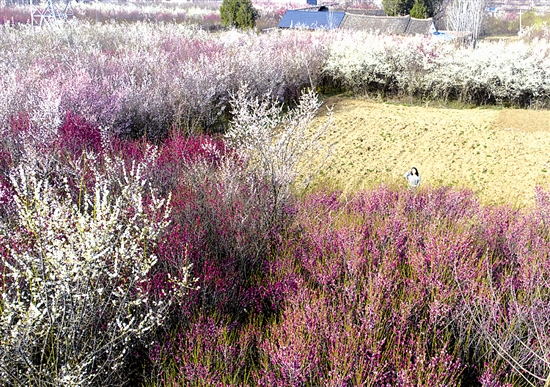 连日来,卢氏县横涧乡的梅花苗圃里数百亩梅花迎春绽放,梅香四溢,成为春日里一道独特的风景线。 本报记者 张朝峰 摄