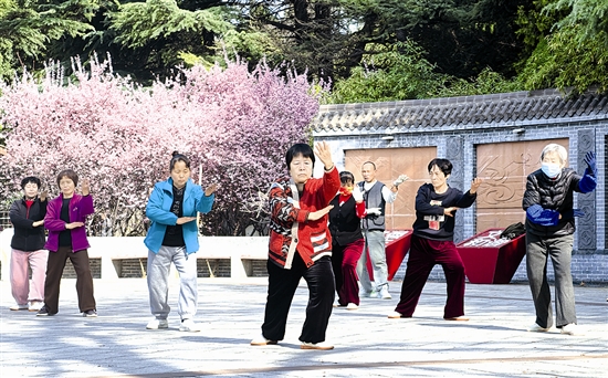 3月25日,三门峡市人民公园春意盎然,市民在园内运动健身,尽享春日美好与健康生活,彰显城市活力。 尚栋 摄