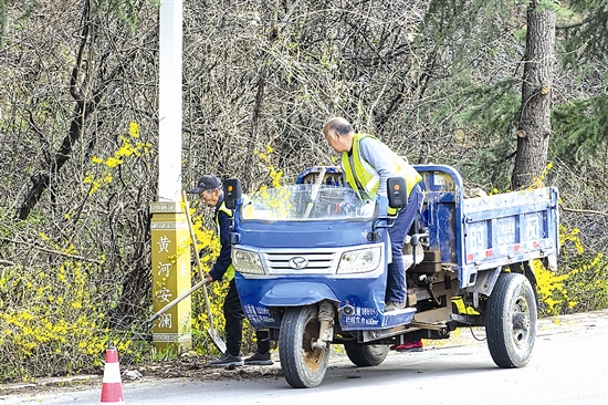 3月25日,养护人员在湖滨区三大路开展路域环境整治工作,对路侧枯枝杂物进行清理,提升路容路貌,美化通行环境。 尚栋 摄
