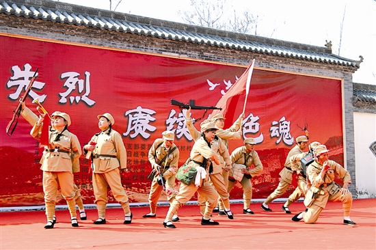 3月27日,市城乡一体化示范区(高新区)大王镇贺村文化广场,一场以“清明祭先烈”为主题的文艺演出活动举行,来自辖区学校的学生通过自编自演剧目深切缅怀抗战殉难八义士与崤函英烈,致敬英雄,赓续红色血脉。 东跃 摄