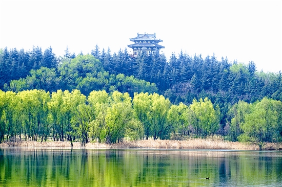 3月28日,三门峡天鹅湖国家城市湿地公园内春意盎然。迎祥阁掩映于青松翠柏之间,天鹅湖畔垂柳依依,碧水澄澈,水鸟轻掠湖面,尽显生态之美,成为广大市民踏青赏春的绝佳去处。 本报记者 胡晓萍 摄