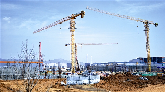 3月29日,渑池县机器人产业园项目建设工地施工正酣。