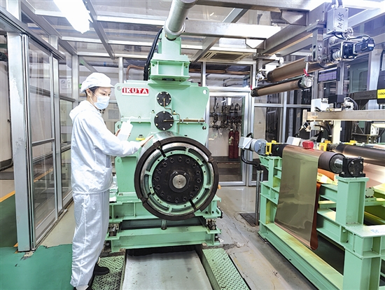 该公司深耕高精尖压延铜箔领域。产品主要应用于新能源汽车、5G/6G高速通信、AI、无人机、消费类电子等领域,远销美国、俄罗斯、德国、韩国等地。 本报记者 王婉媚 摄