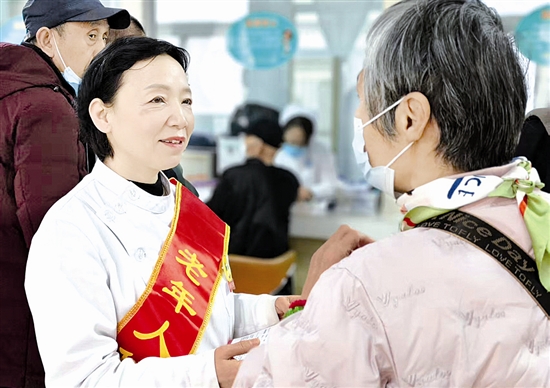 日前,为了提高辖区老年人生活及医疗健康水平,湖滨区涧河街道第二社区卫生服务站为辖区65岁以上老年人进行了体检。现场,身披红绶带的医务工作者耐心引导老人有序体检,并细致解答各类健康疑问。 本报记者 徐伟 摄