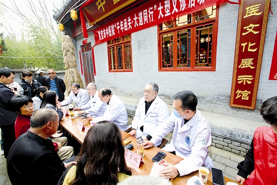 4月2日,灵宝市中医院组织医护人员在函谷关景区开展大型义诊活动,为游客和周边群众免费检查身体,提供医疗咨询服务。 本报记者 何英杰 摄