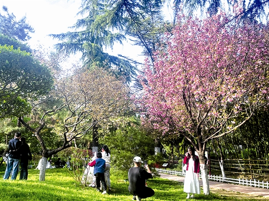 近日,三门峡陕州公园内晚樱盛放,粉白相间的花朵缀满枝头,如云似霞,不少市民趁着晴好天气漫步花下,赏花拍照,定格春日美好瞬间,尽享烂漫春光。 本报记者 王丹丹 摄