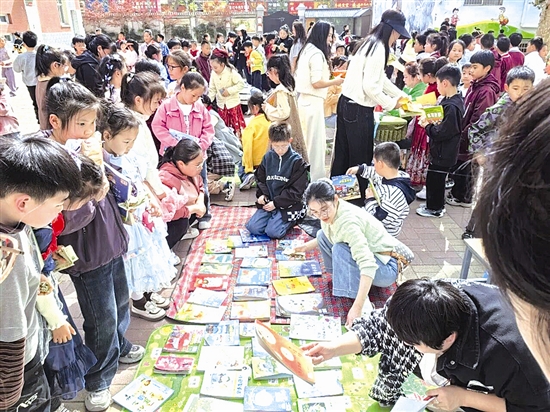 近日,三门峡市第一小学教育集团和平路校区举办“书市寻趣 盛装阅游”主题跳蚤书市,美丽校园变身趣味书海,同学们怀揣期待,以书为媒,共赴一场阅读与欢乐的盛宴。 张喧 摄