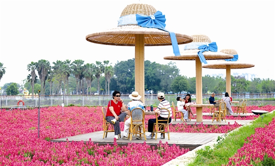 近年来,福建省漳州市将生态修复与城市更新深度融合,在九龙江西溪南岸分批推进龙江岁月城市更新项目,昔日的滩涂荒地变身绿意盎然的生态岸线,成为市民日常休闲和游客打卡的好去处。 新华社记者 邓华 摄