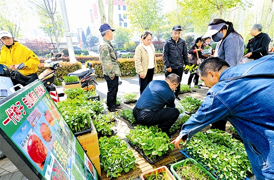 近日,三门峡市区经一路种子销售点迎来菜苗销售旺季,番茄、黄瓜、辣椒等蔬菜秧苗翠绿鲜嫩,吸引不少市民前来选购。 本报记者 李秀芝 摄