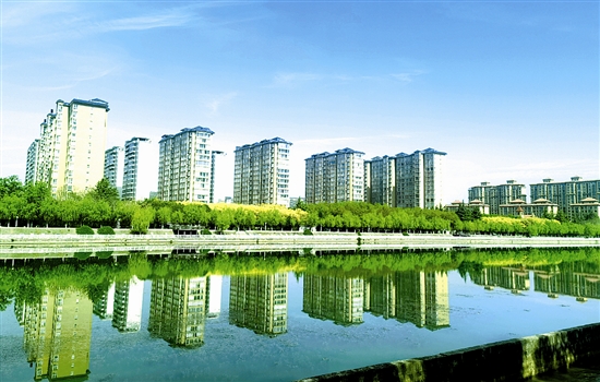 近年来,灵宝市金水湖公园生态质量显著提升,湖光倒影,风光旖旎。图为记者4月11日拍摄的金水湖风光。 本报记者 何英杰 摄