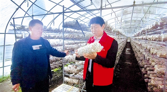 4月14日,卢氏县农业农村局组织科技人员深入基层,开展助农服务。图为该局食用菌产业技术研究中心专家在潘河乡下河村香菇种植园,为菇农讲解春季香菇栽培技术。 本报记者 侯鹏云 摄